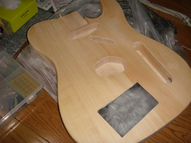 それはボディやネックを、ひたすらごしごしとやすりで研磨。
